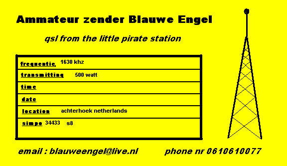 Many thanks to the Combinatie F16 and Radio PCN (Pirate Combination Netherlands) for the QSL card